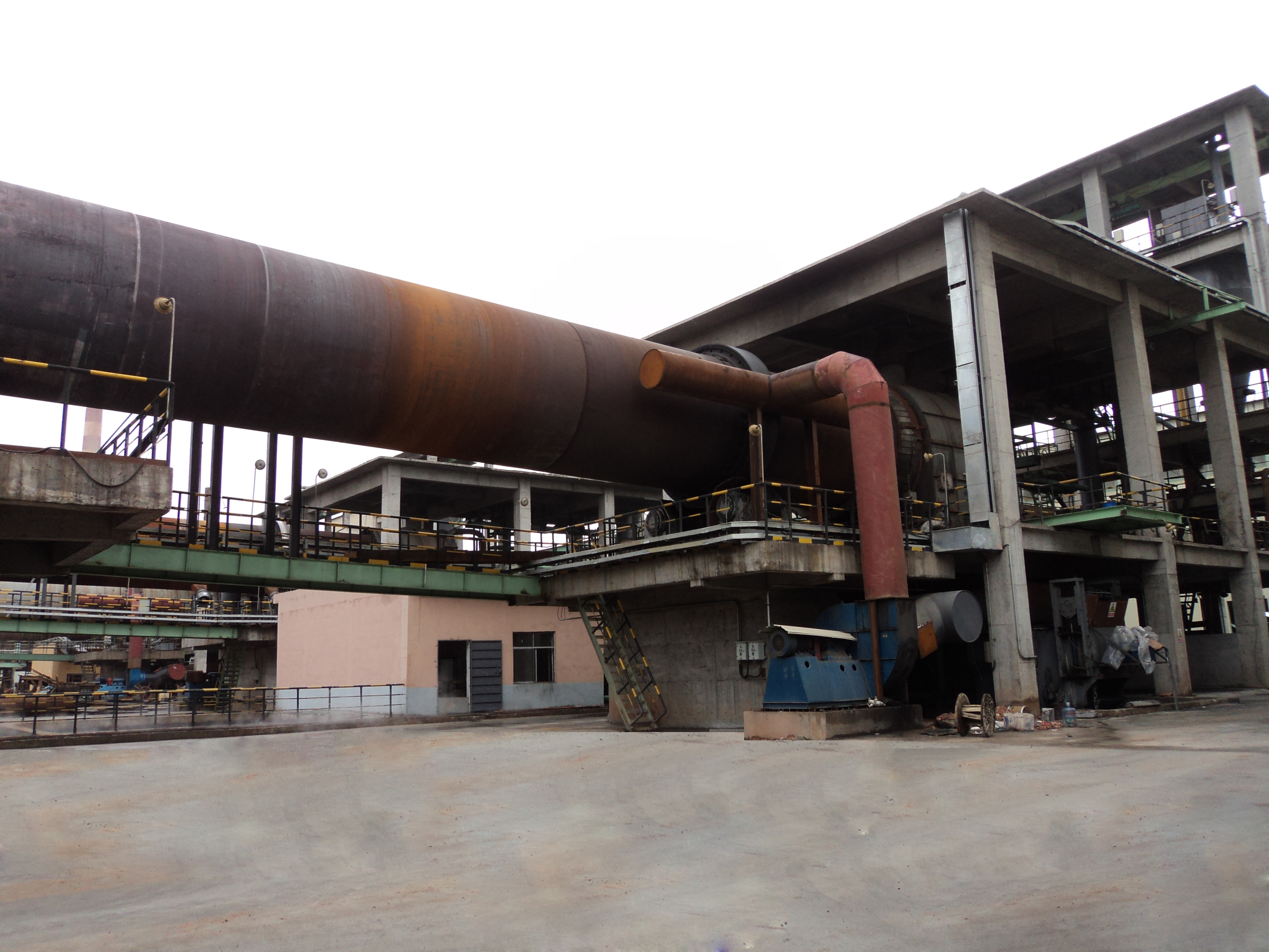 需燃燒處理的物料自窯頭料斗經(jīng)喂料機(jī)構(gòu)均勻給入窯筒體內(nèi),在傳動(dòng)裝置的帶動(dòng)下,物料隨筒體的轉(zhuǎn)動(dòng)而沿筒體軸向前進(jìn),抄板翻轉(zhuǎn)物料、使其煅燒均勻。筒體外側(cè)設(shè)有加熱室。煅燒產(chǎn)生的熱量通過筒體傳給物料,物料在高溫下進(jìn)行分解、干燥、煅燒和焙燒。煅燒好的物料通過卸料閥排出,經(jīng)冷卻包裝后使用。